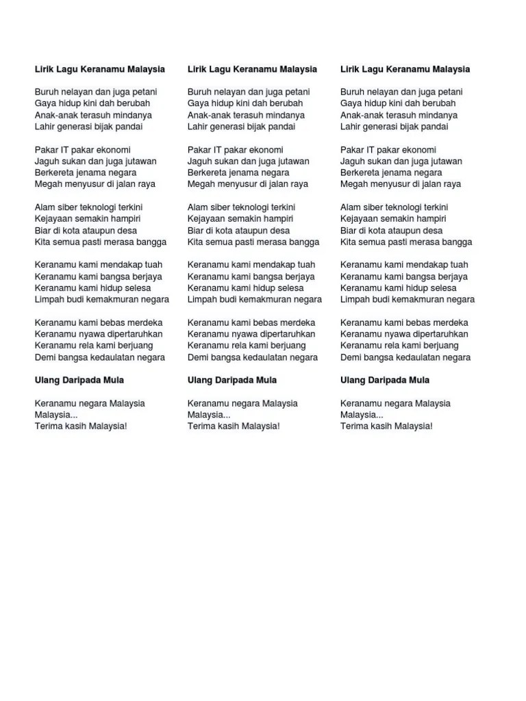 Lirik Keranamu Malaysia : Lirik Lagu Pdf. Buruh, nelayan dan juga petani. 10 ciptaan unggul pak ngah. Buruh, nelayan dan juga petani. Keranamu malaysia song by pak ngah suhaimi words by siso lagu buruh nelayan dan juga petani a very nostalgic & patriotic song.